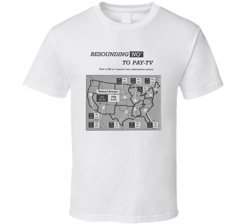 You will be sure to enjoy this Pay Tv Vote Tv Guide Poll 1957 T Shirt which is available on a White 100% Cotton Tee. The Pay Tv Vote Tv Guide Poll 1957 T Shirt is available in youth, kids and adult sizes which you can select from the shirt size drop down below. T-Shirt is shipped out via USPS first class mail with tracking number.