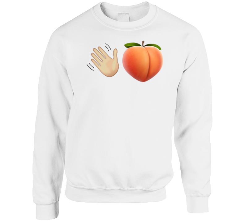You will be sure to enjoy this Smacking Peaches Emoji Parody Texting Funny Crewneck Sweatshirt which is available on a White 100% Cotton Tee. The Smacking Peaches Emoji Parody Texting Funny Crewneck Sweatshirt is available in youth, kids and adult sizes which you can select from the shirt size drop down below. T-Shirt is shipped out via USPS first class mail with tracking number.