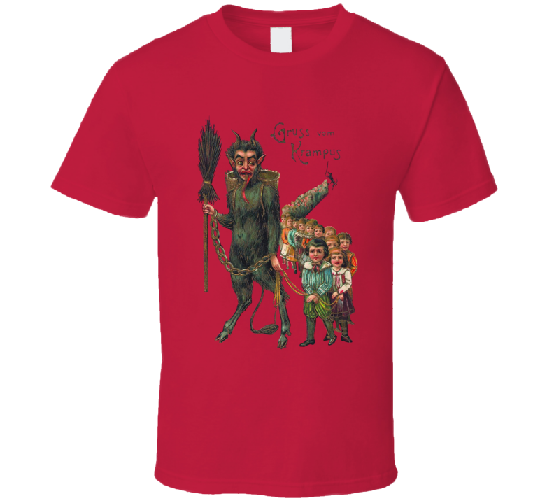 You will be sure to enjoy this Gruss Von Krampus Stealing Children T Shirt which is available on a Red 100% Cotton Tee. The Gruss Von Krampus Stealing Children T Shirt is available in youth, kids and adult sizes which you can select from the shirt size drop down below. T-Shirt is shipped out via USPS first class mail with tracking number.