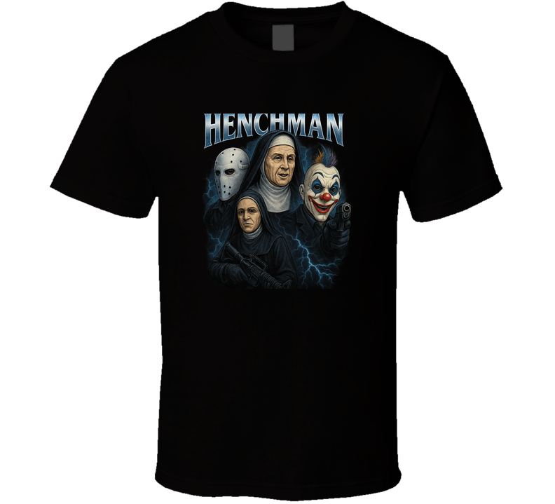 You will be sure to enjoy this Henchman Villains Movie Bad Guys T Shirt which is available on a Black 100% Cotton Tee. The Henchman Villains Movie Bad Guys T Shirt is available in youth, kids and adult sizes which you can select from the shirt size drop down below. T-Shirt is shipped out via USPS first class mail with tracking number.