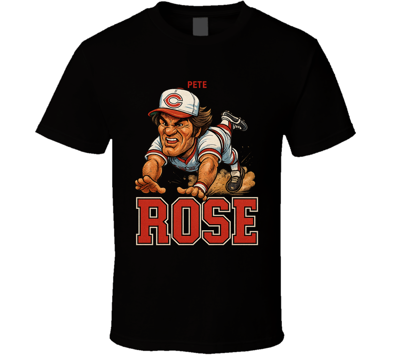 You will be sure to enjoy this Pete Rose Legend Goat Baseball T Shirt which is available on a Black 100% Cotton Tee. The Pete Rose Legend Goat Baseball T Shirt is available in youth, kids and adult sizes which you can select from the shirt size drop down below. T-Shirt is shipped out via USPS first class mail with tracking number.