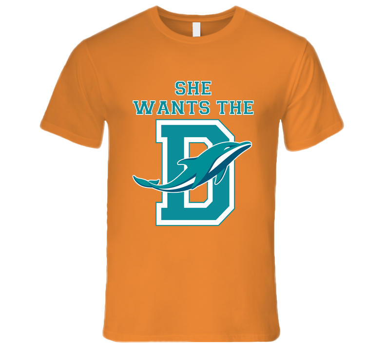 You will be sure to enjoy this She Wants The D Miami Football Fan T Shirt which is available on a Orange 100% Cotton Tee. The She Wants The D Miami Football Fan T Shirt is available in youth, kids and adult sizes which you can select from the shirt size drop down below. T-Shirt is shipped out via USPS first class mail with tracking number.