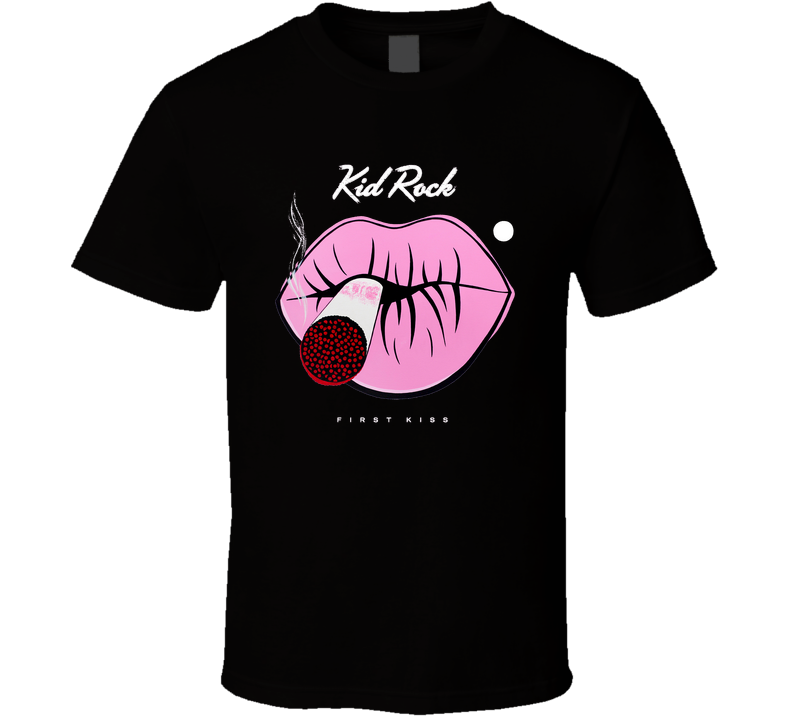 You will be sure to enjoy this Kid Rock First Kiss Album Cover T Shirt which is available on a Black 100% Cotton Tee. The Kid Rock First Kiss Album Cover T Shirt is available in youth, kids and adult sizes which you can select from the shirt size drop down below. T-Shirt is shipped out via USPS first class mail with tracking number.