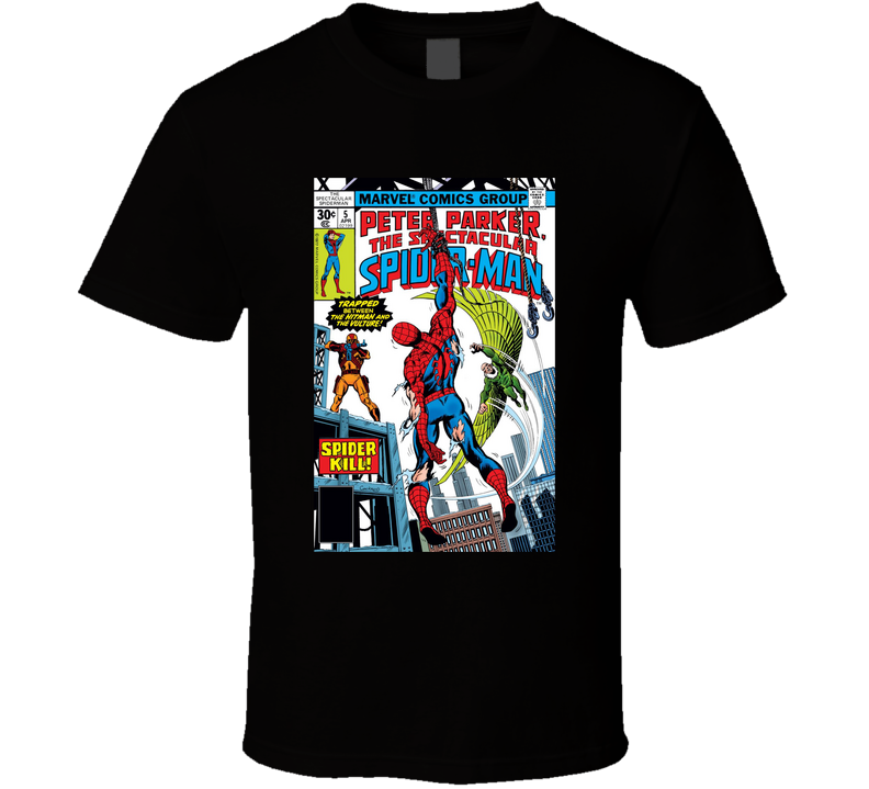 You will be sure to enjoy this Spiderman 1977 Comic Cover Fan T Shirt which is available on a Black 100% Cotton Tee. The Spiderman 1977 Comic Cover Fan T Shirt is available in youth, kids and adult sizes which you can select from the shirt size drop down below. T-Shirt is shipped out via USPS first class mail with tracking number.