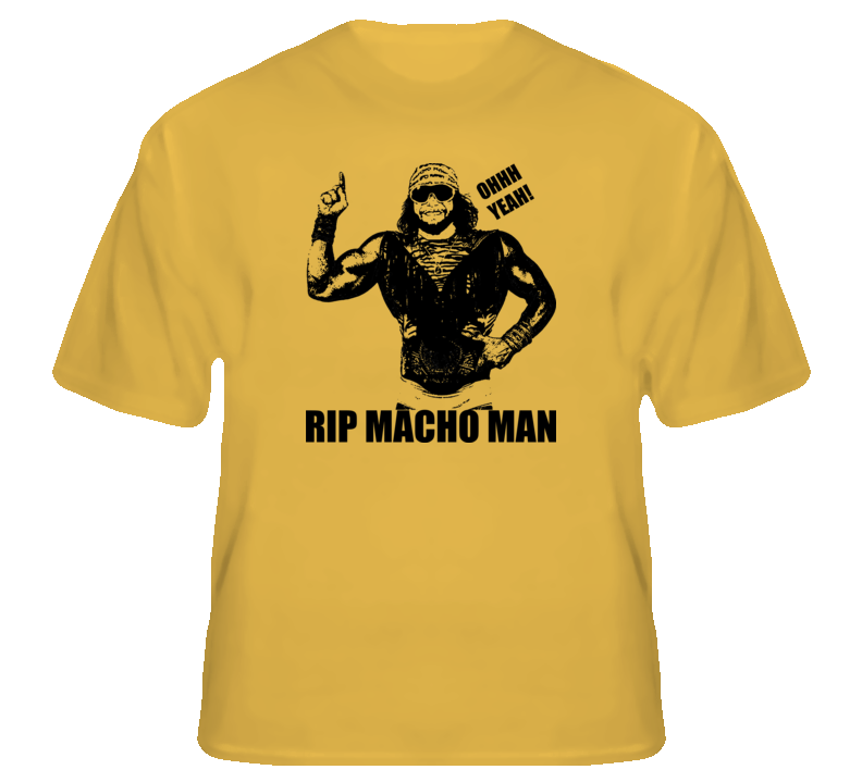 You will be sure to enjoy this Macho Man Randy Savage RIP Wrestling T shirt which is available on a Gold 100% Cotton Tee. The Macho Man Randy Savage RIP Wrestling T shirt is available in youth, kids and adult sizes which you can select from the shirt size drop down below. T-Shirt is shipped out via USPS first class mail with tracking number.