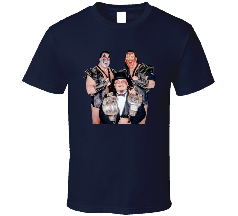 You will be sure to enjoy this Demolition Mr Fuji Wrestling T Shirt which is available on a Navy 100% Cotton Tee. The Demolition Mr Fuji Wrestling T Shirt is available in youth, kids and adult sizes which you can select from the shirt size drop down below. T-Shirt is shipped out via USPS first class mail with tracking number.