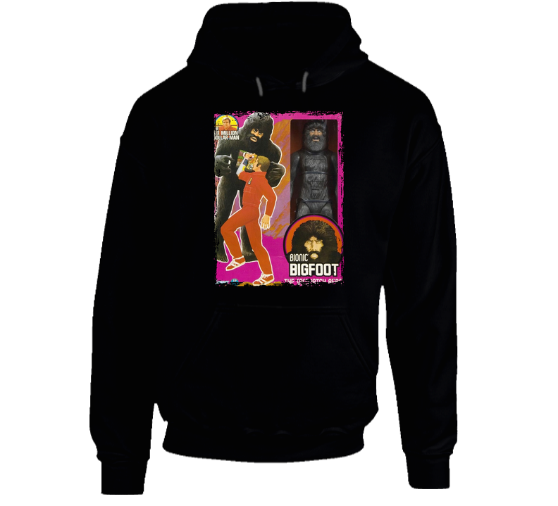 You will be sure to enjoy this Six Million Dollar Man Bionic Bigfoot Toy Fan Hoodie which is available on a Black 100% Cotton Tee. The Six Million Dollar Man Bionic Bigfoot Toy Fan Hoodie is available in youth, kids and adult sizes which you can select from the shirt size drop down below. T-Shirt is shipped out via USPS first class mail with tracking number.