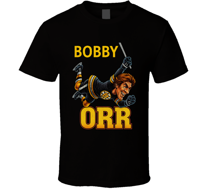 You will be sure to enjoy this Bobby Orr Hockey Goat Legend T Shirt which is available on a Black 100% Cotton Tee. The Bobby Orr Hockey Goat Legend T Shirt is available in youth, kids and adult sizes which you can select from the shirt size drop down below. T-Shirt is shipped out via USPS first class mail with tracking number.