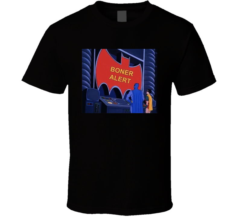 You will be sure to enjoy this Batman And Robin Parody Funny Boner Alert T Shirt which is available on a Black 100% Cotton Tee. The Batman And Robin Parody Funny Boner Alert T Shirt is available in youth, kids and adult sizes which you can select from the shirt size drop down below. T-Shirt is shipped out via USPS first class mail with tracking number.