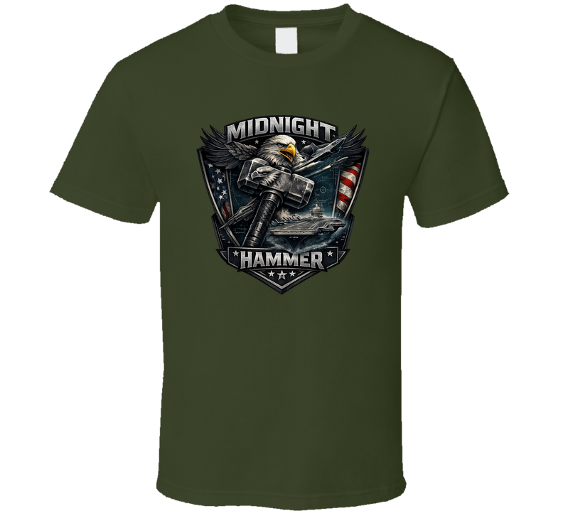 You will be sure to enjoy this Midnight Hammer USA Military T Shirt which is available on a Military Green 100% Cotton Tee. The Midnight Hammer USA Military T Shirt is available in youth, kids and adult sizes which you can select from the shirt size drop down below. T-Shirt is shipped out via USPS first class mail with tracking number.