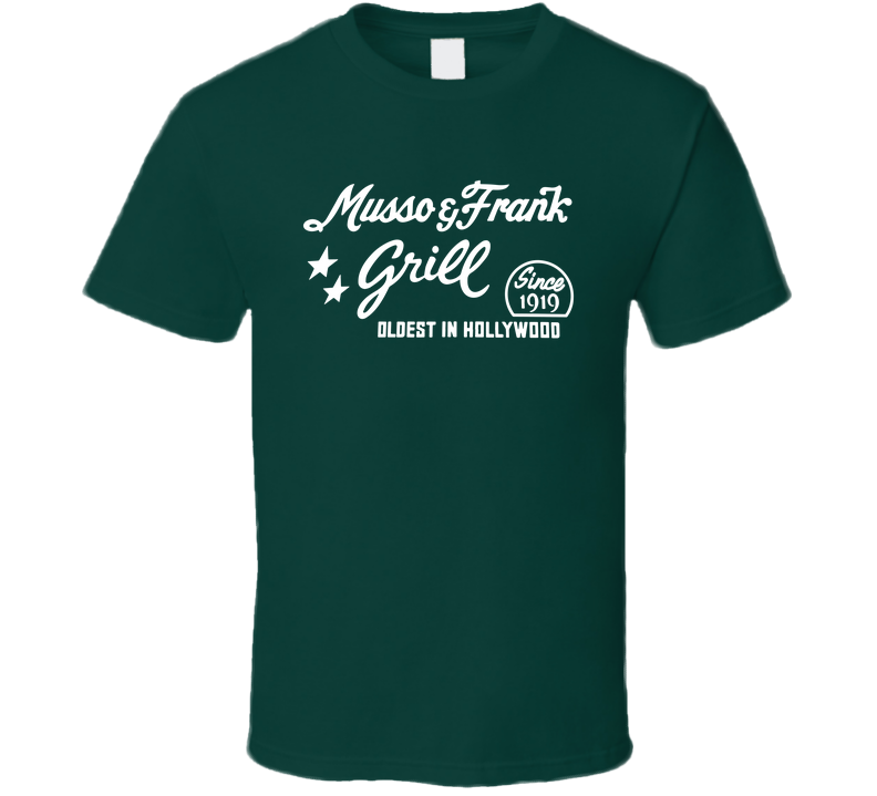 You will be sure to enjoy this Musso & Frank Grill Oldest Restaurant Once Upon A Time In Hollywood Logo Sign T Shirt which is available on a Forest Green 100% Cotton Tee. The Musso & Frank Grill Oldest Restaurant Once Upon A Time In Hollywood Logo Sign T Shirt is available in youth, kids and adult sizes which you can select from the shirt size drop down below. T-Shirt is shipped out via USPS first class mail with tracking number.