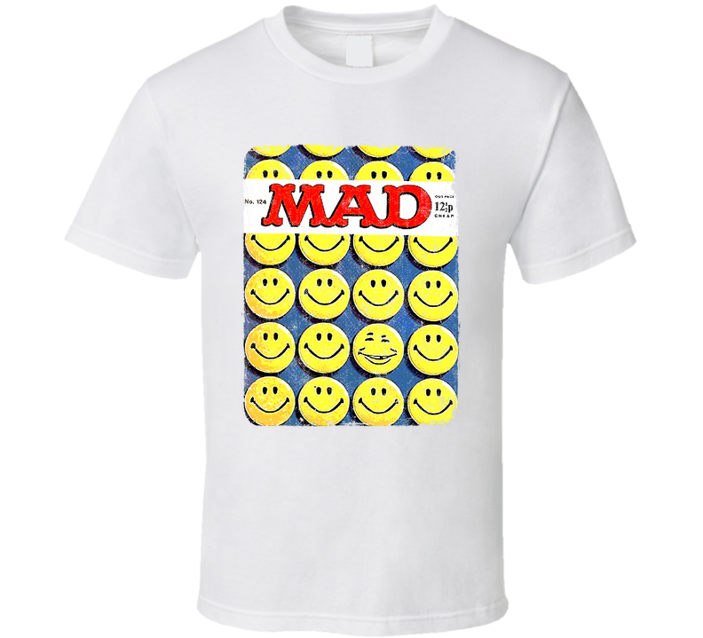 You will be sure to enjoy this Mad Tv Magazine Cover Smile Face That 70's Show Retro Grunge Look Gift T Shirt which is available on a White 100% Cotton Tee. The Mad Tv Magazine Cover Smile Face That 70's Show Retro Grunge Look Gift T Shirt is available in youth, kids and adult sizes which you can select from the shirt size drop down below. T-Shirt is shipped out via USPS first class mail with tracking number.