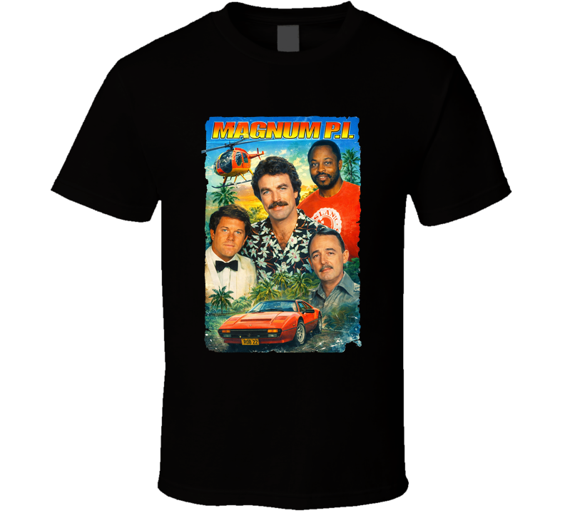 You will be sure to enjoy this Magnum Pi Retro Fan T Shirt which is available on a Black 100% Cotton Tee. The Magnum Pi Retro Fan T Shirt is available in youth, kids and adult sizes which you can select from the shirt size drop down below. T-Shirt is shipped out via USPS first class mail with tracking number.